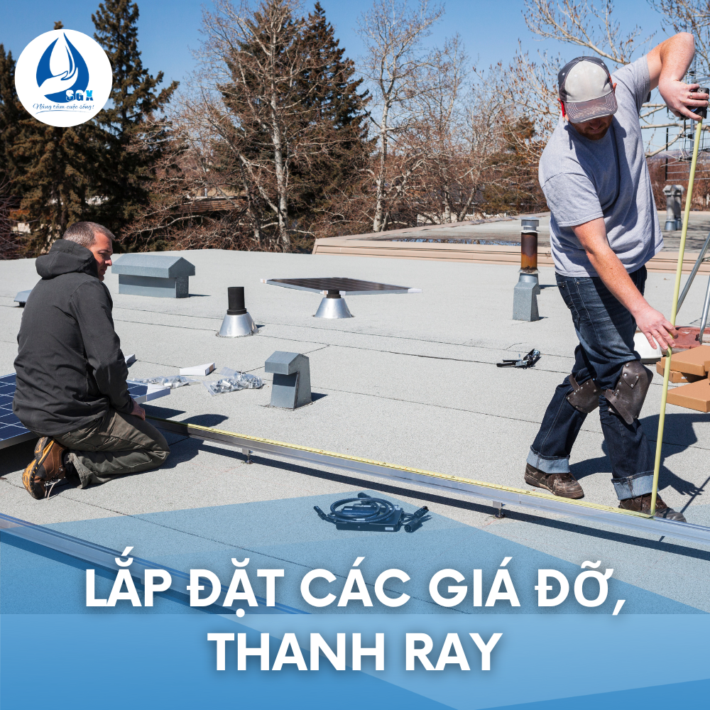 - Trước khi lắp, bạn phải lắp đặt các giá đỡ trên mái nhà dốc. Hay gắn các thanh ray gắn kết trên các mái nhà bằng phẳng.