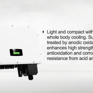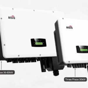 Three Phase Inverter 30-60kw – Afore is specifically designed for applications in PV systems for power plants and commercial settings, with a capacity ranging from 30kW to 60kW. All models feature an electrostatically painted aluminum casing, enhancing durability and effective corrosion resistance. Equipped with external inductors, the inverter ensures efficient heat dissipation, significantly improving durability and extending the lifespan of the inverter.
